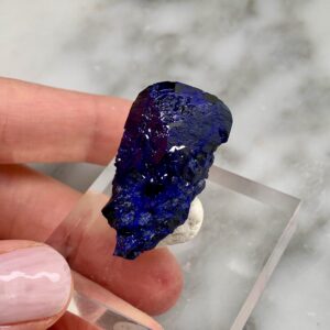 Ces spécimens uniques, comme ce spécimen d’azurite de la mine de cuivre de Milpillas, sont sélectionnés à la main pour la qualité de leurs caractéristiques et sont intéressants pour des raisons esthétiques, scientifiques ou historiques. Les collectionneurs sont invités à nous contacter pour des achats privés. Nous aimons tenir compte des demandes spéciales lors de l’approvisionnement de nos spécimens.