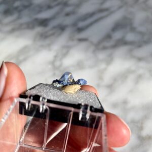 Ces spécimens uniques, tels que ce spécimen cristal de benitoite de San Benito, Californie, sont sélectionnés à la main pour la qualité de leurs caractéristiques et présentent un intérêt pour des raisons esthétiques, scientifiques ou historiques. Les collectionneurs sont invités à nous contacter pour des opportunités d’achats privé. Nous aimons garder à l’esprit les demandes spéciales de nos clients lors de l’acquisition de nos spécimens.
