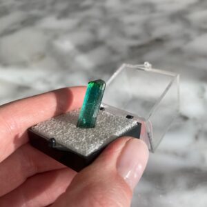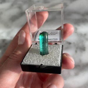 Ces spécimens uniques, tels que ce spécimen d’elbaite Indicolite Tourmaline Bleue de Lagoa de Malva, Brésil, sont sélectionnés à la main pour la qualité de leurs caractéristiques et présentent un intérêt pour des raisons esthétiques, scientifiques ou historiques. Les collectionneurs sont invités à nous contacter pour des opportunités d’achats privé. Nous aimons garder à l’esprit les demandes spéciales de nos clients lors de l’acquisition de nos spécimens.