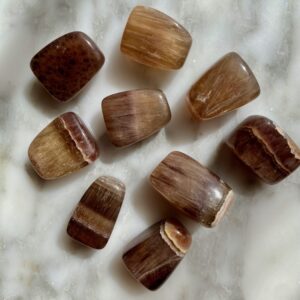 Dans les traditions métaphysiques, la fluorite dorée est considérée comme une pierre de concentration, de clarté et de positivité. On pense qu’elle améliore la clarté mentale, la prise de décision et la volonté personnelle, tandis que ses tons dorés sont censés encourager la confiance, la joie et la manifestation. Associée au chakra du plexus solaire et au chakra du troisième œil, la fluorine rubanée est également censée harmoniser les énergies, équilibrer les états émotionnels et protéger des influences négatives.