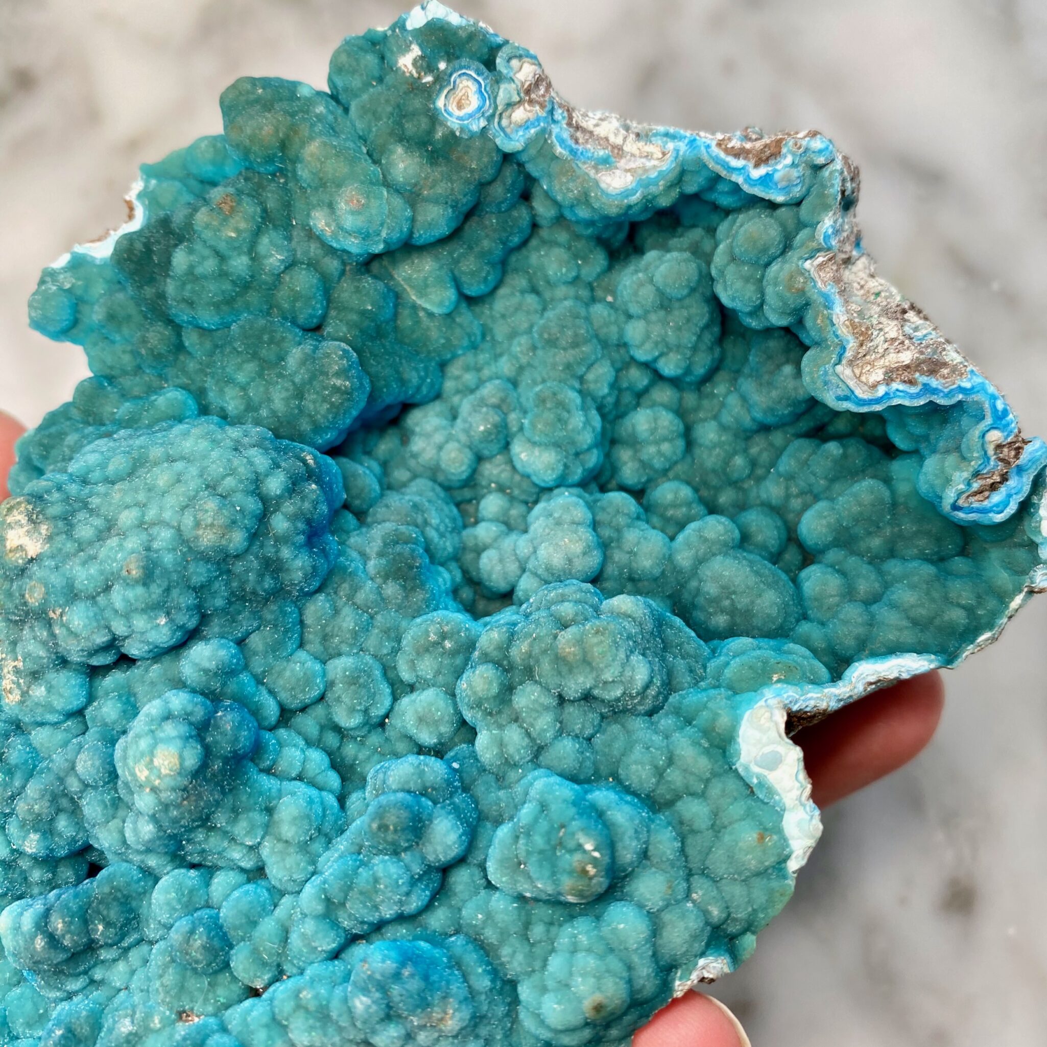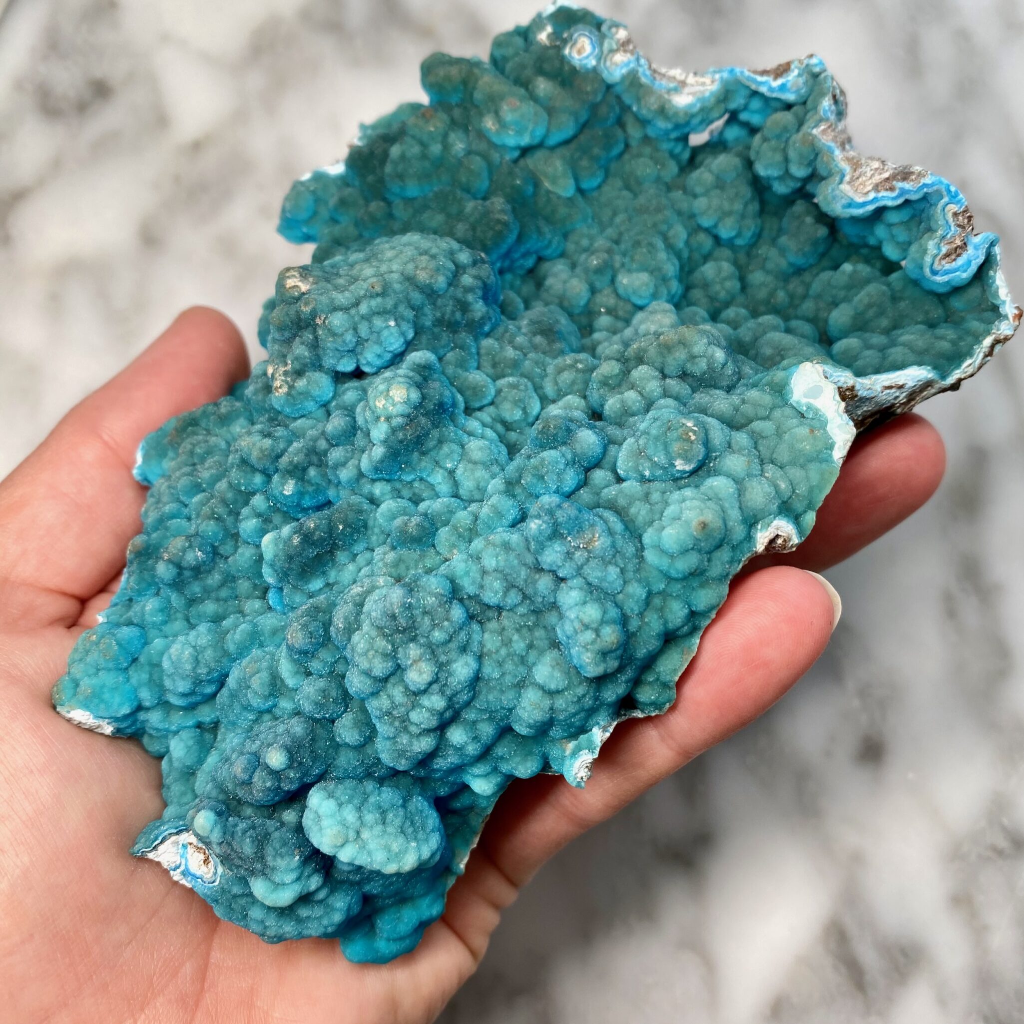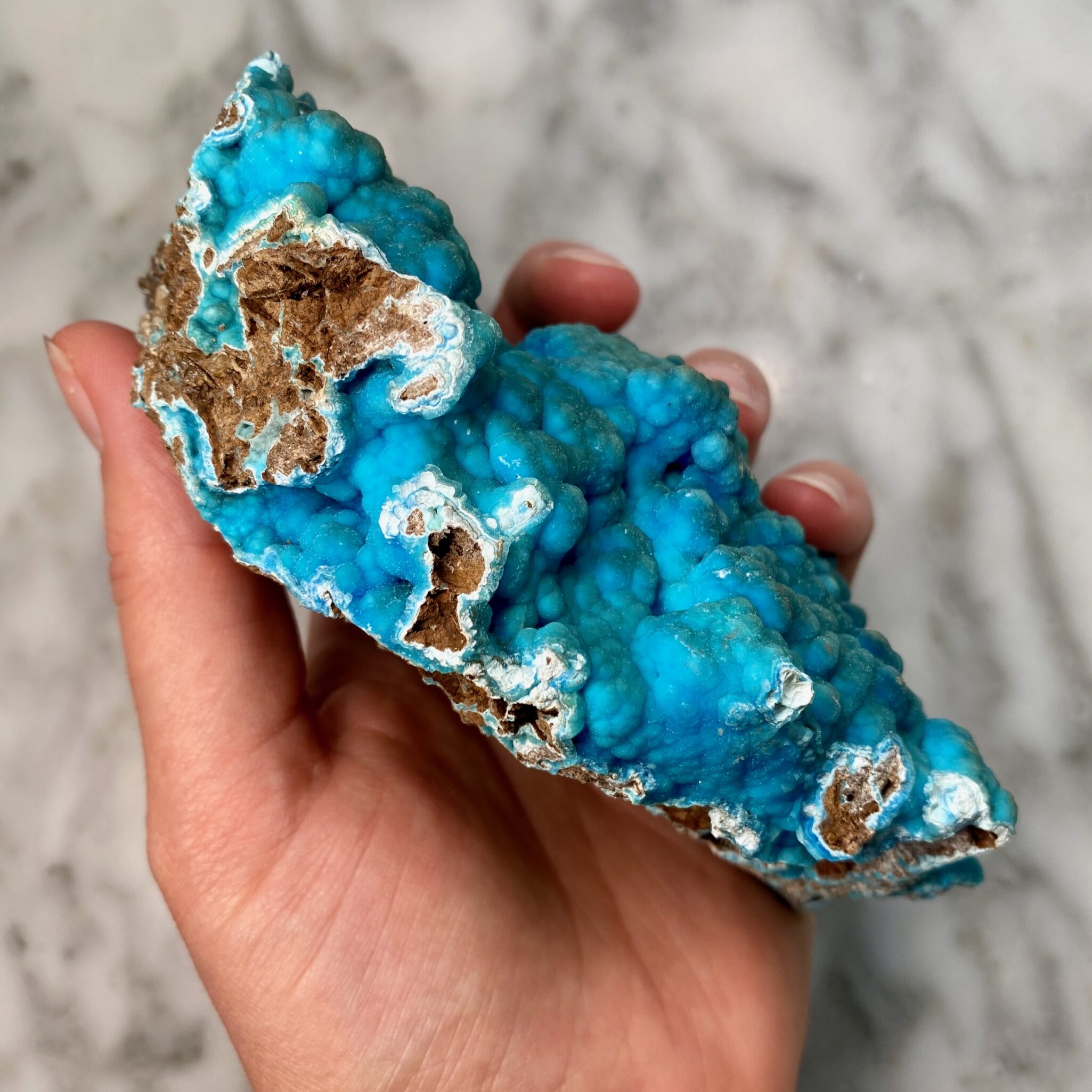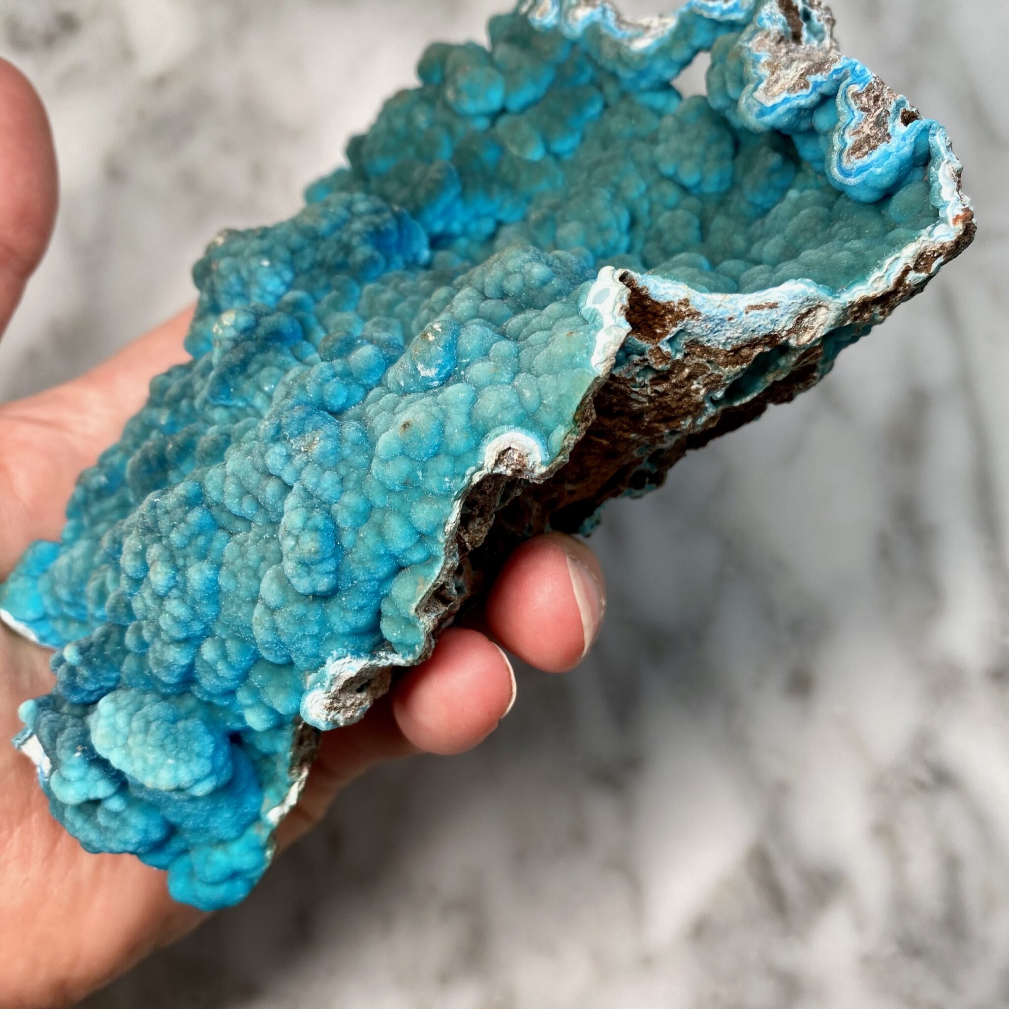 - Magnifique hémimorphite botryoïdale bleu foncé de Palabanda, République du Congo.