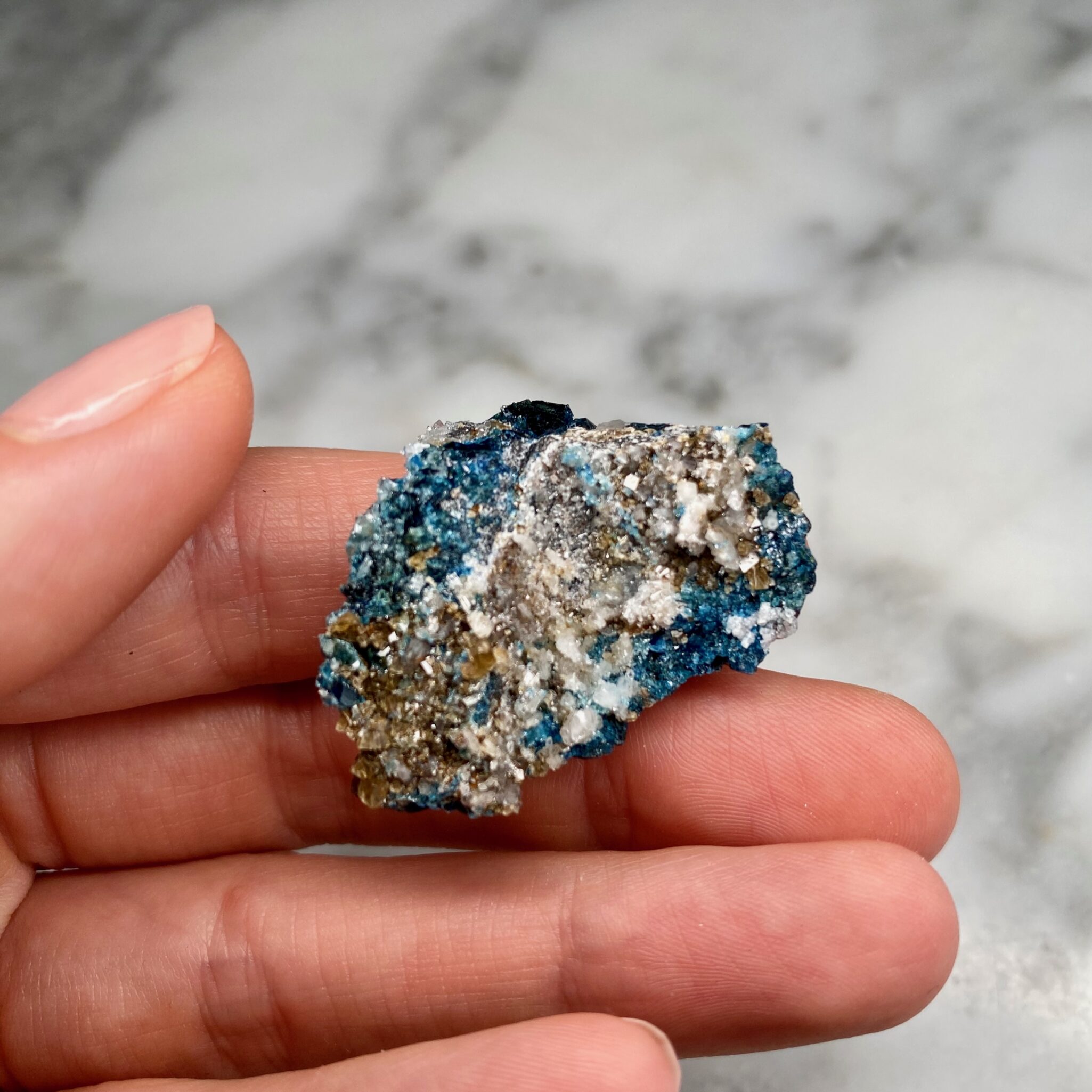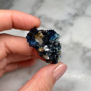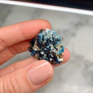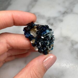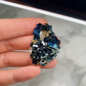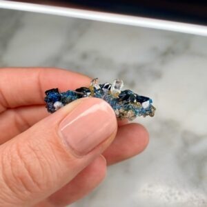 Ces spécimens uniques, comme cette lazulite et quartz de Rapid Creek, sont sélectionnés à la main pour la qualité de leurs caractéristiques et sont intéressants pour des raisons esthétiques, scientifiques ou historiques. Les collectionneurs sont invités à nous contacter pour des achats privés. Nous aimons tenir compte des demandes spéciales lors de l’approvisionnement de nos spécimens.