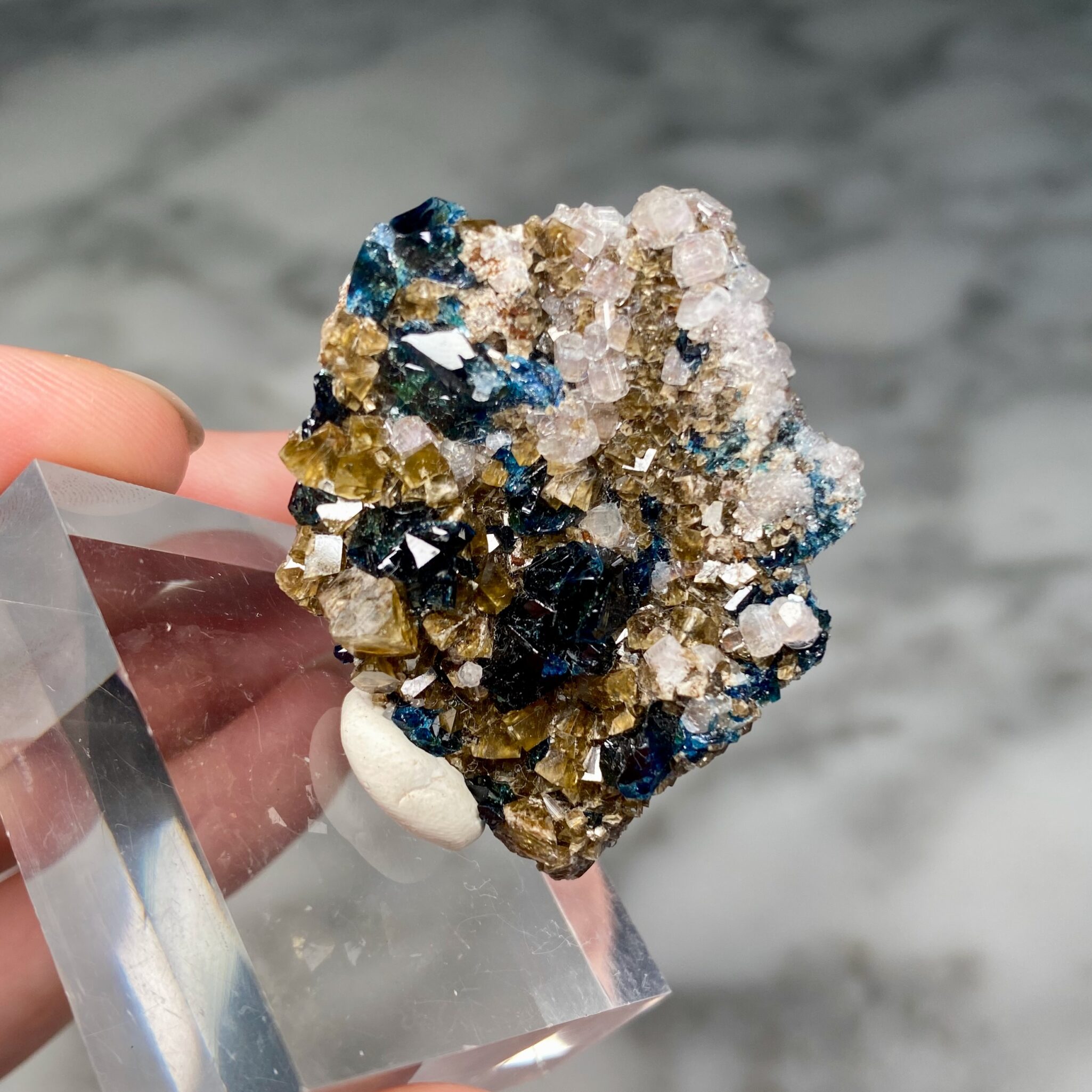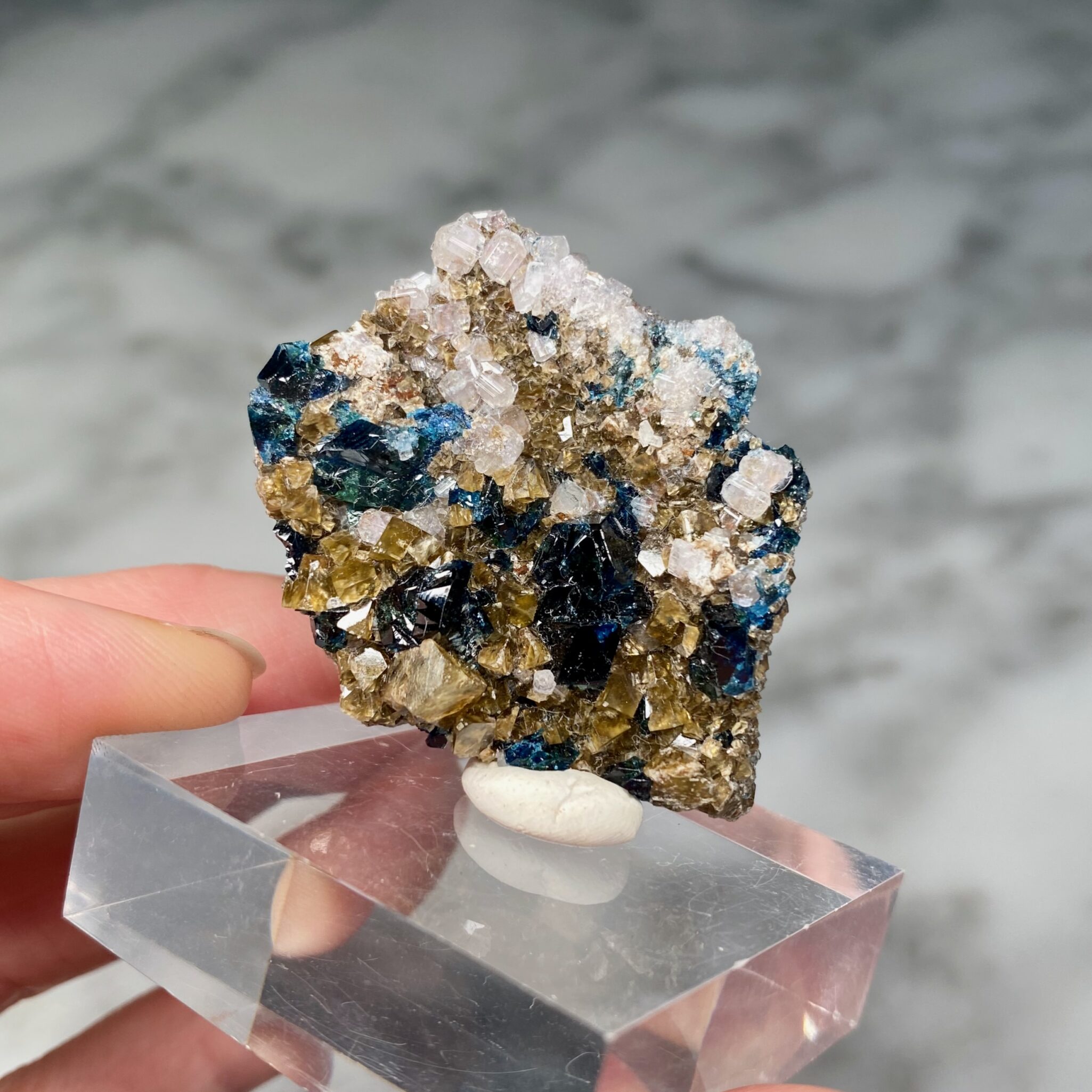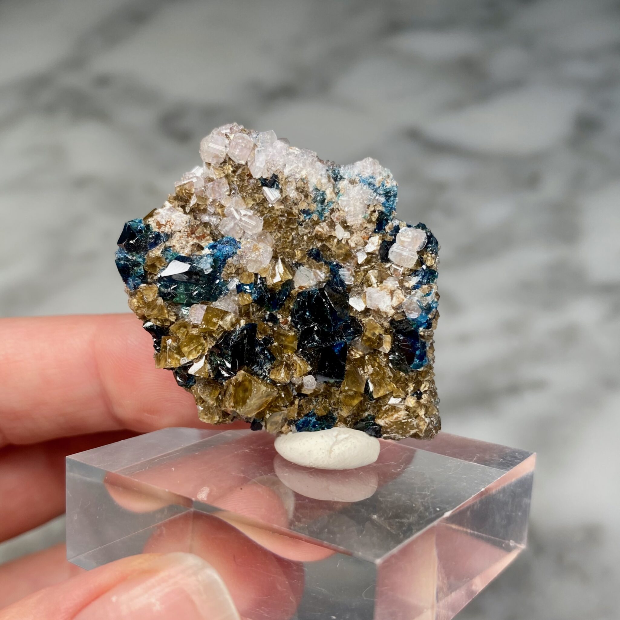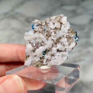 Ces spécimens uniques, comme cette lazulite de Rapid Creek, sont sélectionnés à la main pour la qualité de leurs caractéristiques et sont intéressants pour des raisons esthétiques, scientifiques ou historiques. Les collectionneurs sont invités à nous contacter pour des achats privés. Nous aimons tenir compte des demandes spéciales lors de l’approvisionnement de nos spécimens.