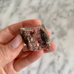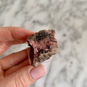 - Un authentique spécimen de rhodochrosite sur matrice de Huancavelica, Pérou.