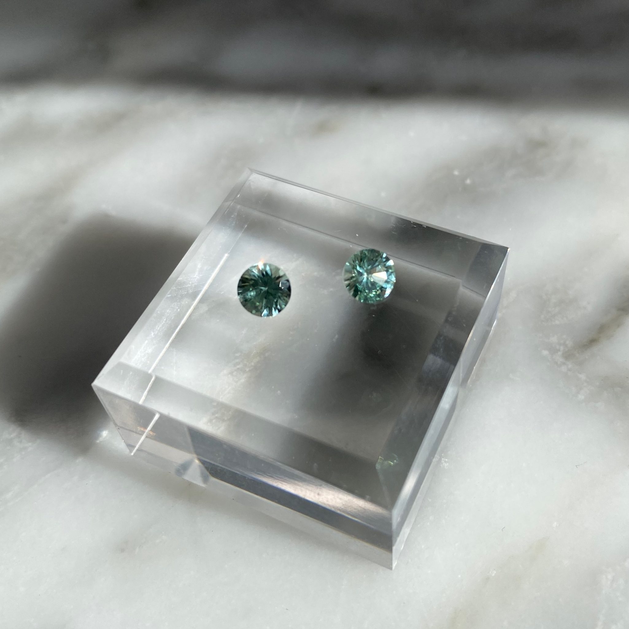 - Superbe ensemble de saphirs de couleur menthe faits en laboratoire.
