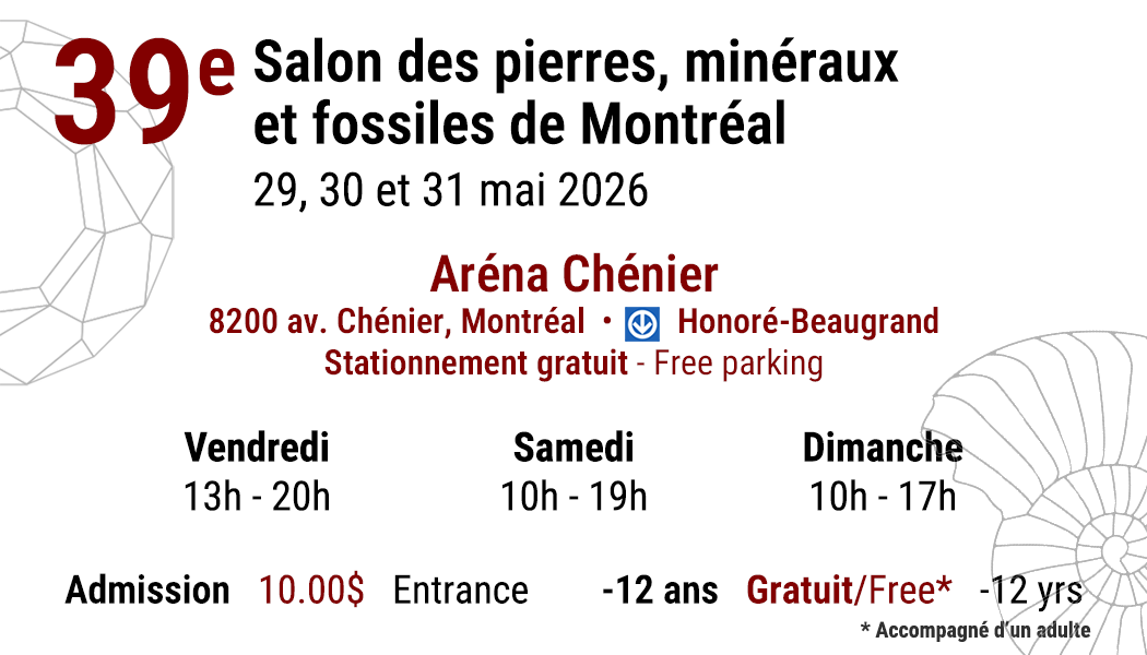Montreal’s springtime gem show is just around the corner! Mark your calendars for the upcoming Montreal Gem Show, organized by the Club de Minéralogie de Montréal, taking place from Friday May 29th to Sunday May 31st, 2026. It’s an event you won’t want to miss!