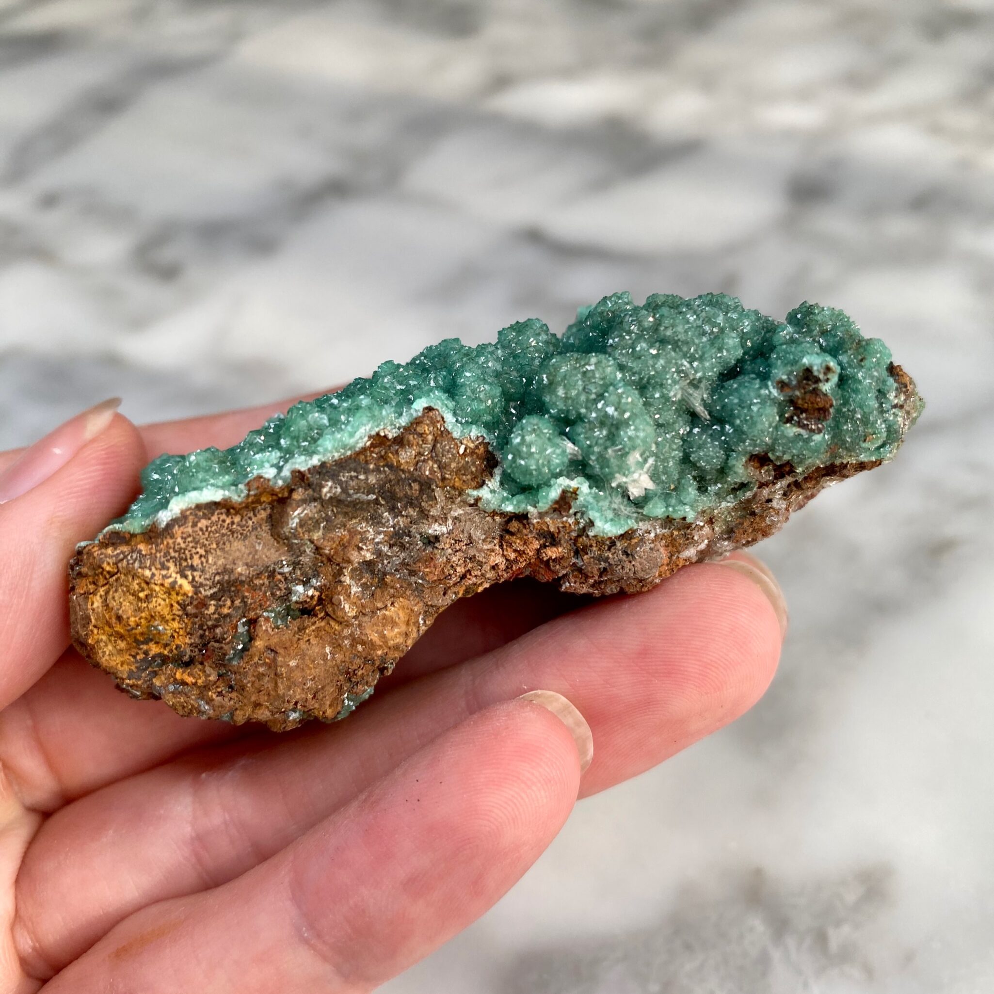 - Cuprian Adamite from Ojuela Mine, Mexico.