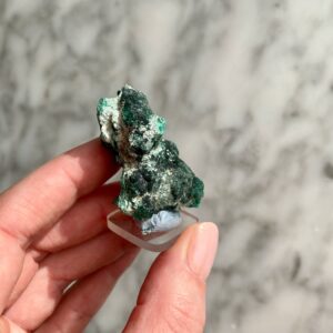 These unique specimens, such as this specimen of Atacamite on malachite from Australia, are hand-selected for the quality of their features, and are of interest either for aesthetic, scientific or historical reasons. Collectors are invited to contact us for private shopping opportunities. We enjoy keeping in mind special requests when sourcing our specimens.