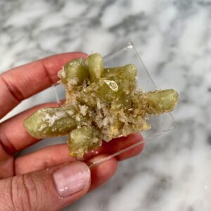 - Particularity: old stock specimen. Cluster of 8 individual brazilianite points