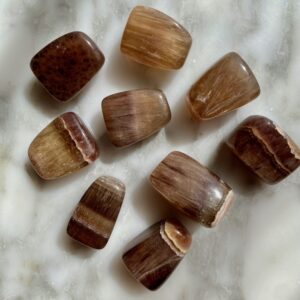 In metaphysical traditions, golden fluorite is considered a stone of focus, clarity, and positivity. It is believed to enhance mental clarity, decision-making, and personal will, while its golden tones are thought to encourage confidence, joy, and manifestation. Associated with the Solar Plexus Chakra and Third Eye Chakra, banded fluorite is also said to harmonize energies, balance emotional states, and provide protection from negative influences.