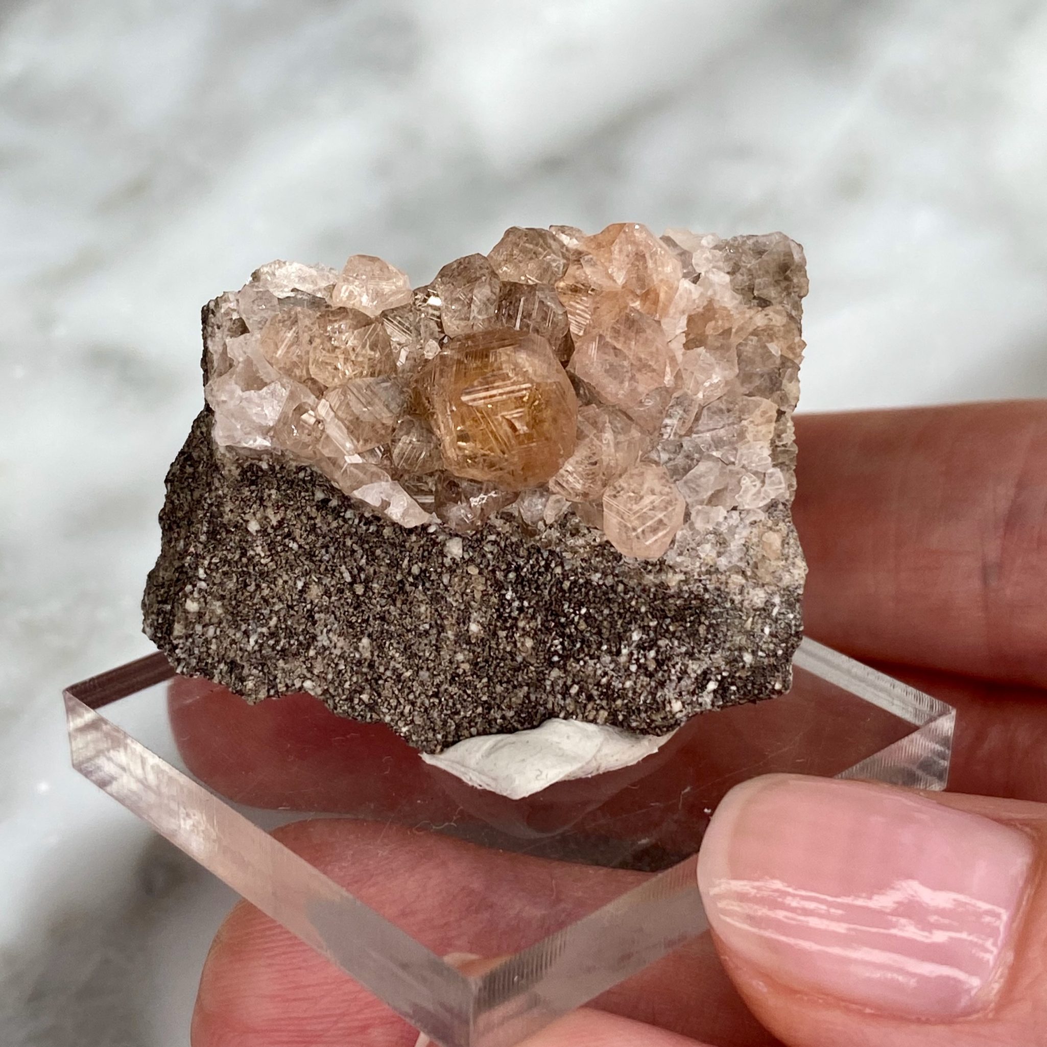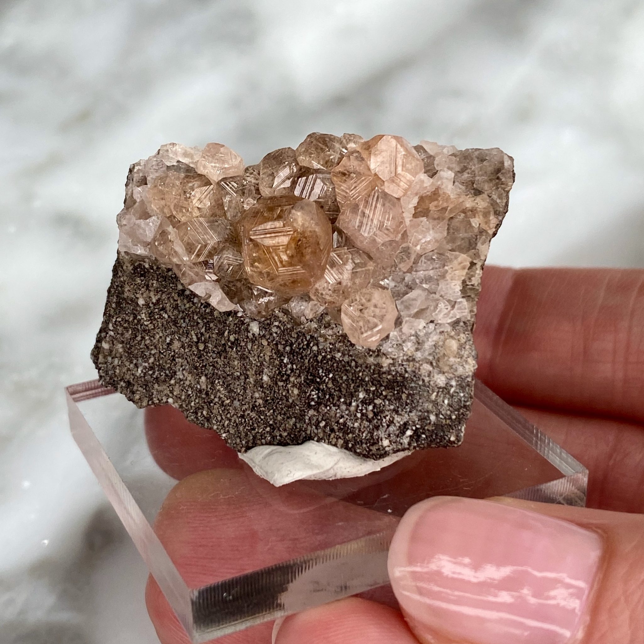 These unique specimens, such as this garnets on matrix from Jeffrey Mine, are hand-selected for the quality of their features, and are of interest either for aesthetic, scientific or historical reasons. Collectors are invited to contact us for private shopping opportunities. We enjoy keeping in mind special requests when sourcing our specimens.