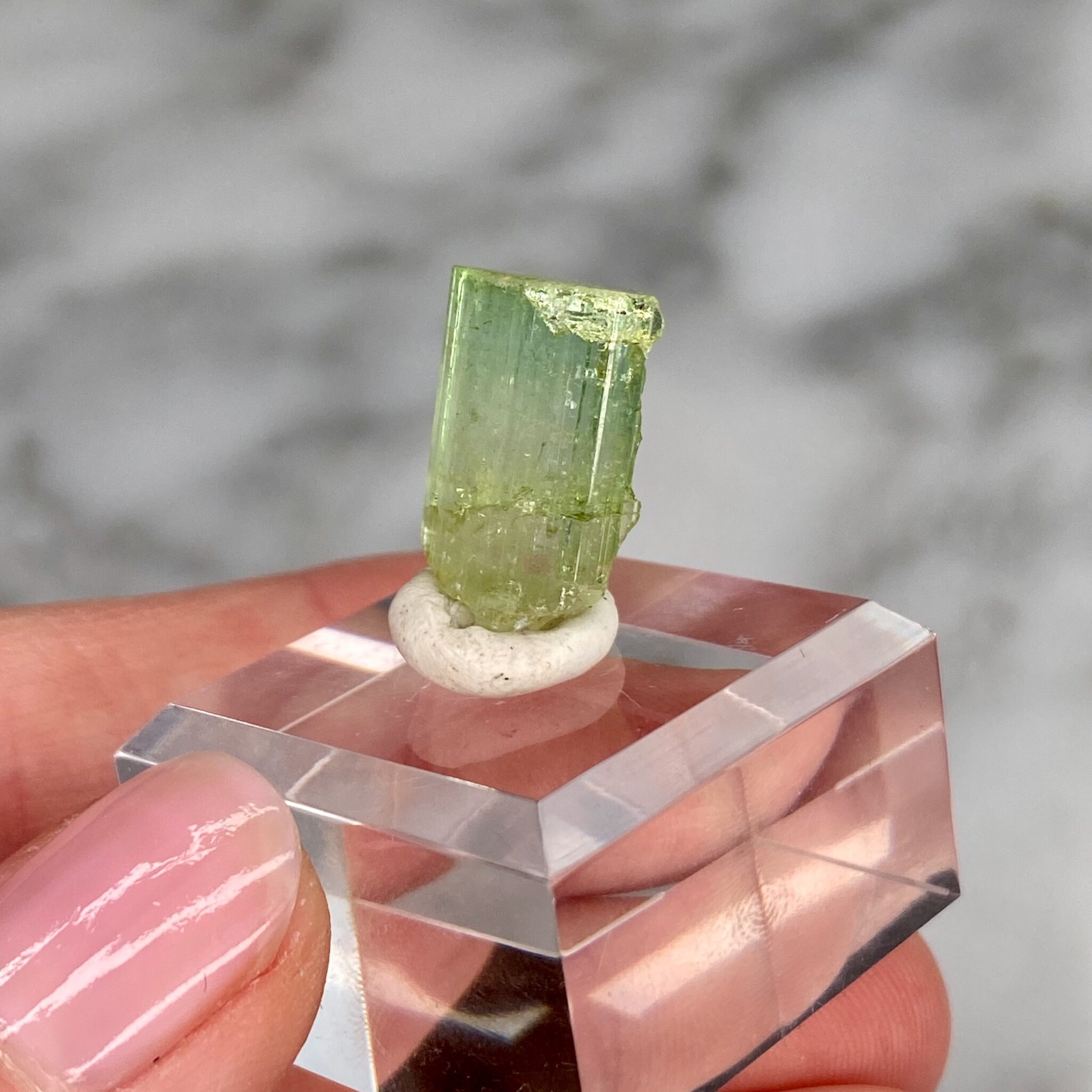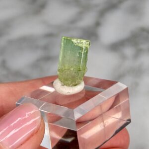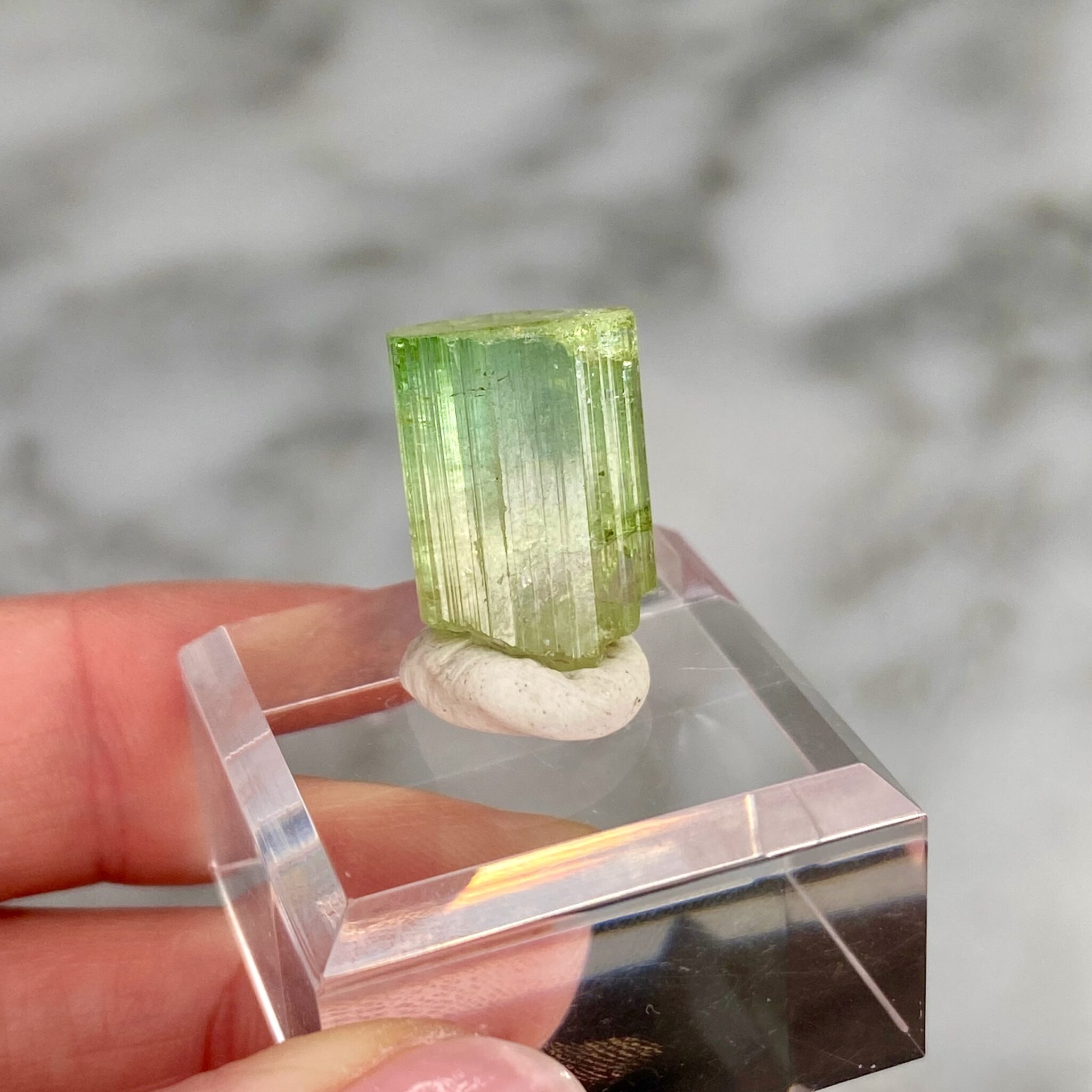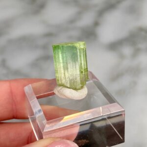 These unique specimens, such as this specimen of Green Elbaite Tourmaline from Urubu Mine, are hand-selected for the quality of their features, and are of interest either for aesthetic, scientific or historical reasons. Collectors are invited to contact us for private shopping opportunities. We enjoy keeping in mind special requests when sourcing our specimens.