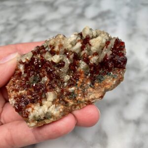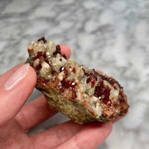 - Particularity: Old-stock collection piece with lustrous garnet, constrasting beautifully with the light green colour of diopside.