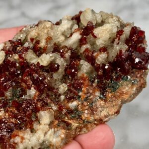 These unique specimens, such as this grossular garnet and diopside from Bellacombe, val D’Aoste, Italy, are hand-selected for the quality of their features, and are of interest either for aesthetic, scientific or historical reasons. Collectors are invited to contact us for private shopping opportunities. We enjoy keeping in mind special requests when sourcing our specimens.