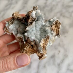 - Particularity: very aesthetic cabinet specimen showcasing the intricacies of botryoidal hemimorphite in matrix