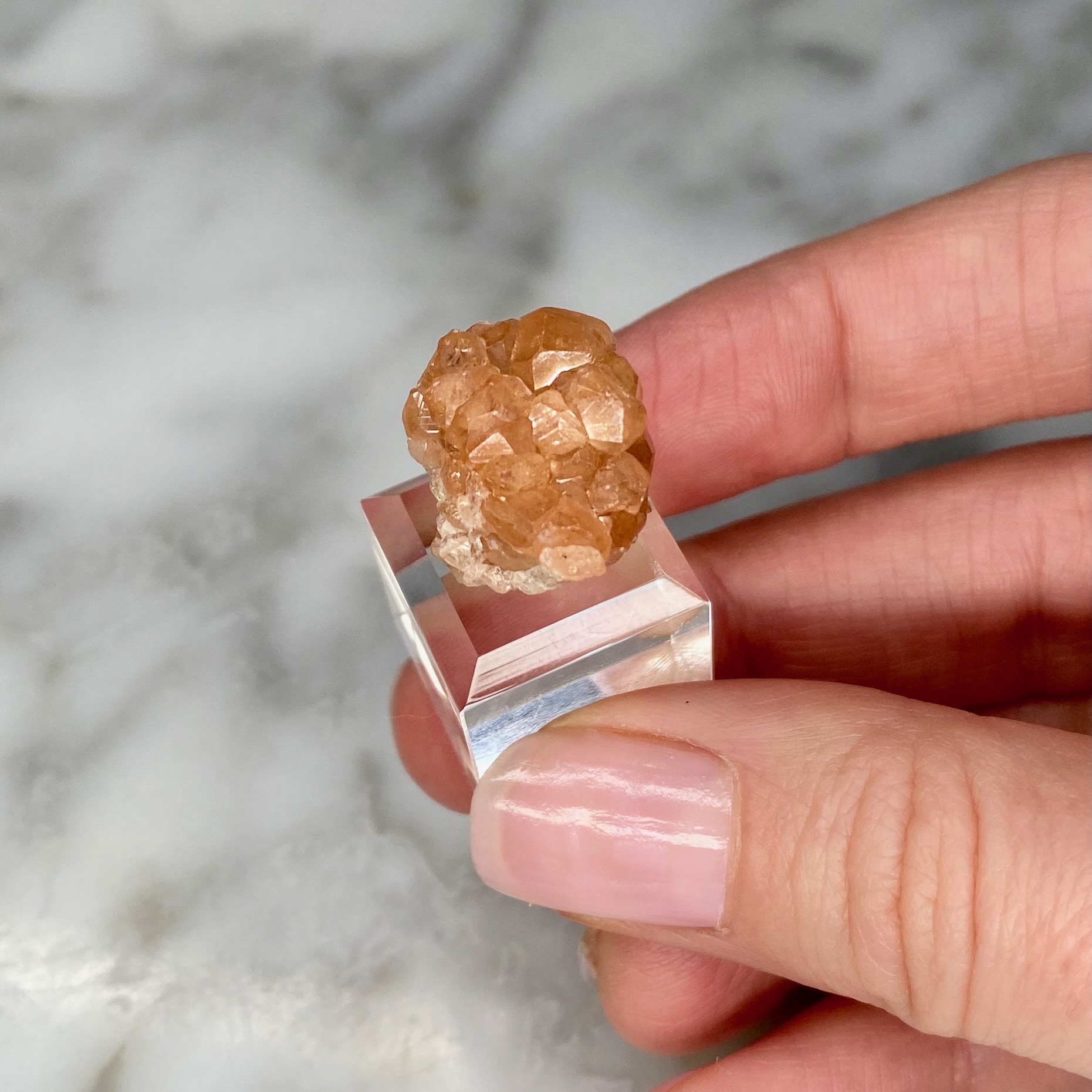These unique specimens, such as this hessonite garnet cluster from Jeffrey Mine, are hand-selected for the quality of their features, and are of interest either for aesthetic, scientific or historical reasons. Collectors are invited to contact us for private shopping opportunities. We enjoy keeping in mind special requests when sourcing our specimens.