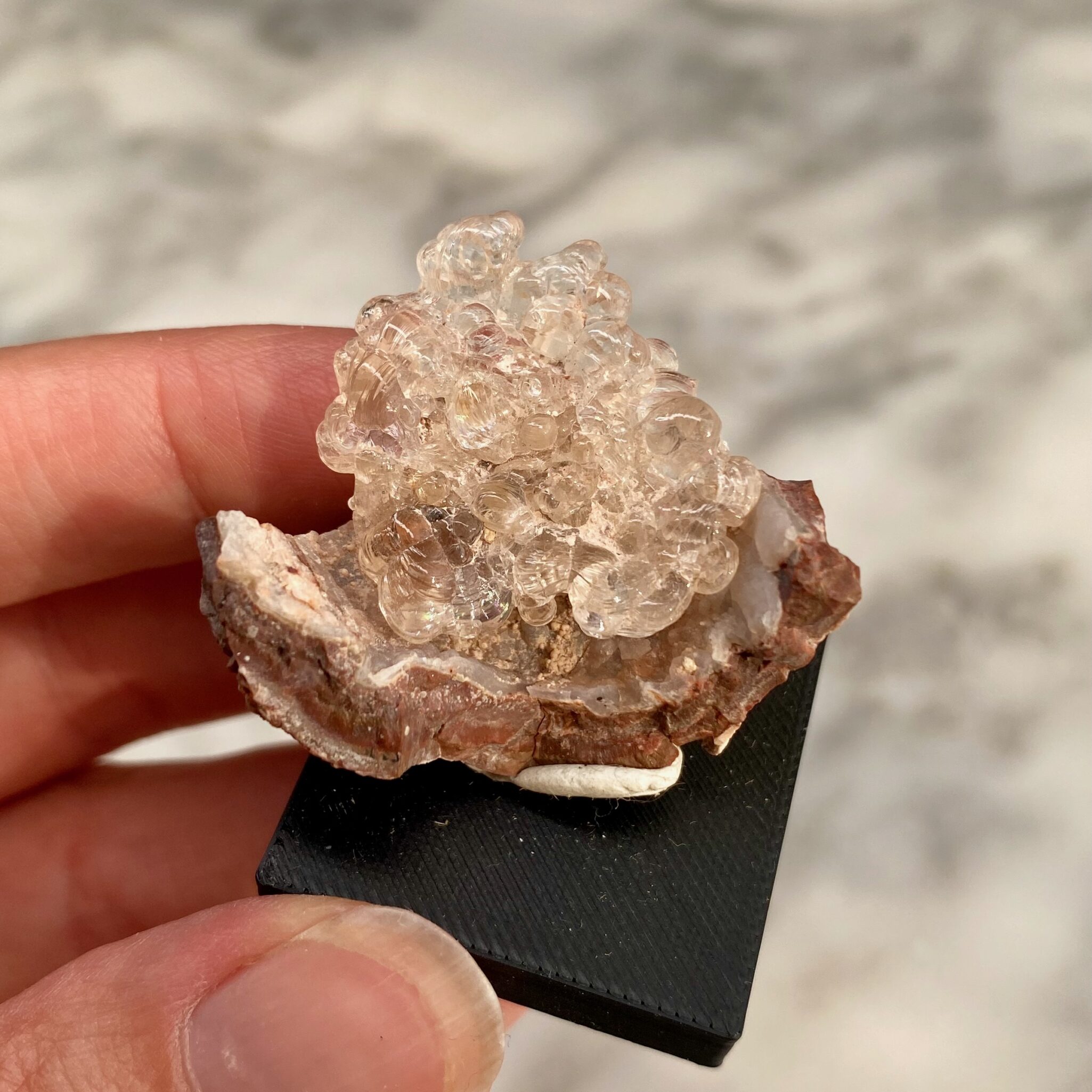 These unique specimens, such as this Hyalite Opal from Mexico, are hand-selected for the quality of their features, and are of interest either for aesthetic, scientific or historical reasons. Collectors are invited to contact us for private shopping opportunities. We enjoy keeping in mind special requests when sourcing our specimens.