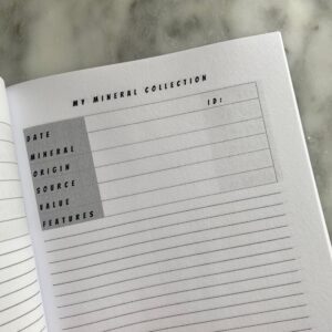 A copy of Minera Emporium’s Kid’s Mineral Collection Logbook.