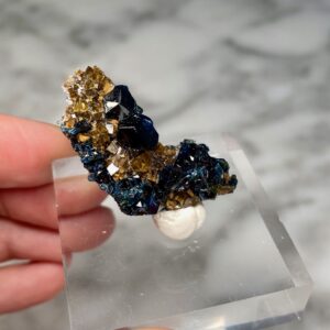 These unique specimens, such as this lazulite and siderite from Rapid Creek, are hand-selected for the quality of their features, and are of interest either for aesthetic, scientific or historical reasons. Collectors are invited to contact us for private shopping opportunities. We enjoy keeping in mind special requests when sourcing our specimens.