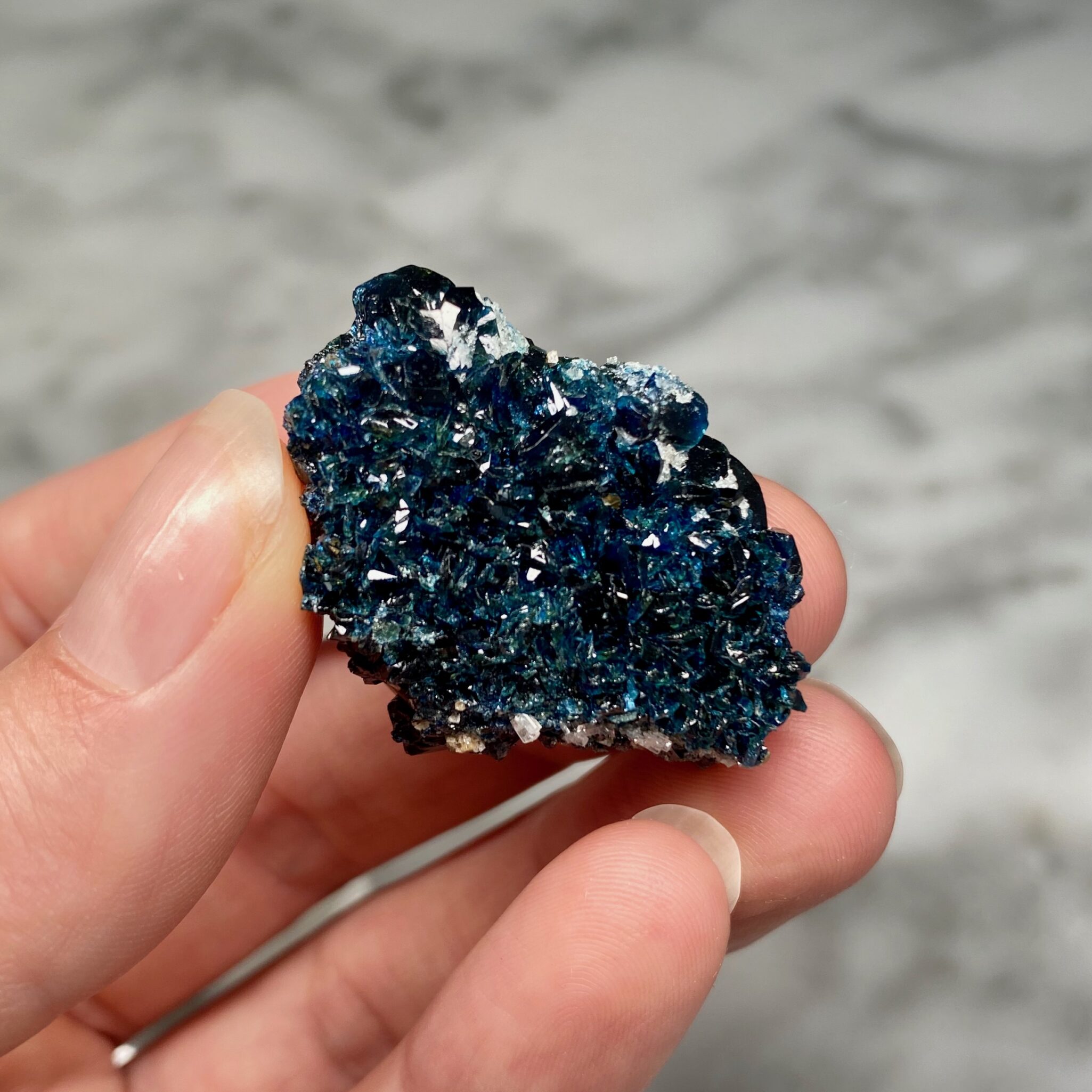 These unique specimens, such as this lazulite from Rapid Creek, are hand-selected for the quality of their features, and are of interest either for aesthetic, scientific or historical reasons. Collectors are invited to contact us for private shopping opportunities. We enjoy keeping in mind special requests when sourcing our specimens.