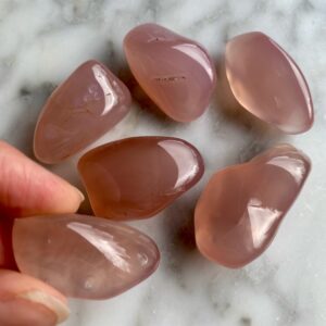 - One hand-selected pink chalcedony tumbled pocket stone