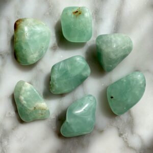 In metaphysical traditions, prehnite is considered a stone of unconditional love, inner peace, and spiritual growth. It is believed to enhance intuition, support emotional healing, and strengthen the connection to nature. Associated with the Solar Plexus and Heart Chakras, prehnite is associated with one’s power to express and carry out the desires of the heart. It is a talisman of inner peace, alignment specific to your Truth, and confidence.
