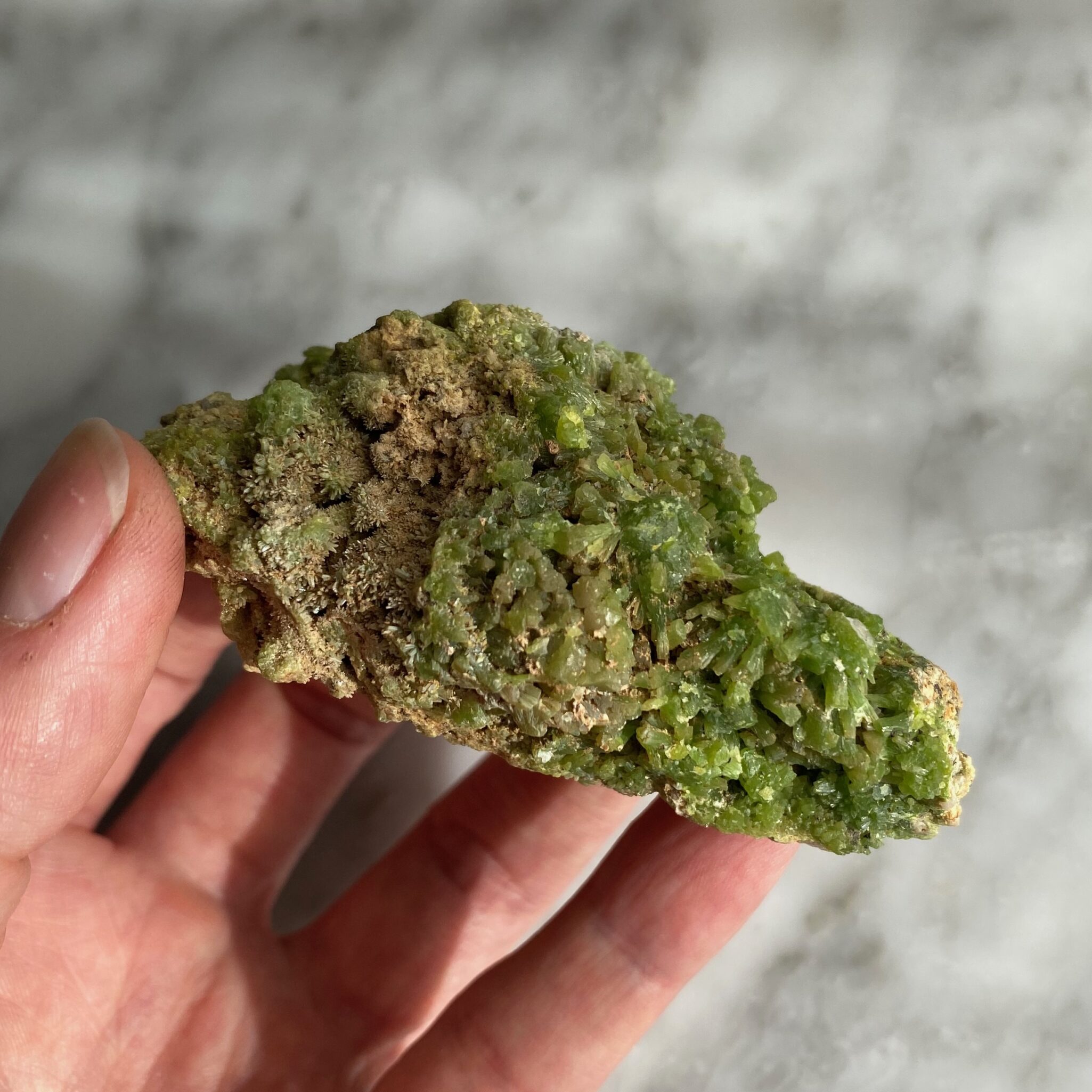 These unique specimens, such as this specimen of Pyromorphite from Cordoba, Spain, are hand-selected for the quality of their features, and are of interest either for aesthetic, scientific or historical reasons. Collectors are invited to contact us for private shopping opportunities. We enjoy keeping in mind special requests when sourcing our specimens.