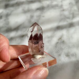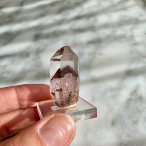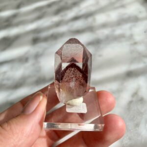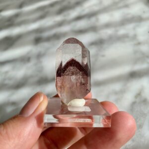 - Particularity: well-terminated clear quartz with perfectly defined hematite inclusion