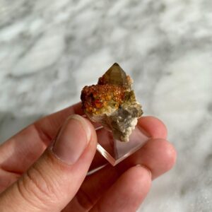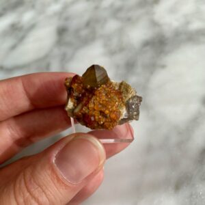 These unique specimens, such as this Smoky Quartz and Spessartine Garnets from Wushan, are hand-selected for the quality of their features, and are of interest either for aesthetic, scientific or historical reasons. Collectors are invited to contact us for private shopping opportunities. We enjoy keeping in mind special requests when sourcing our specimens.